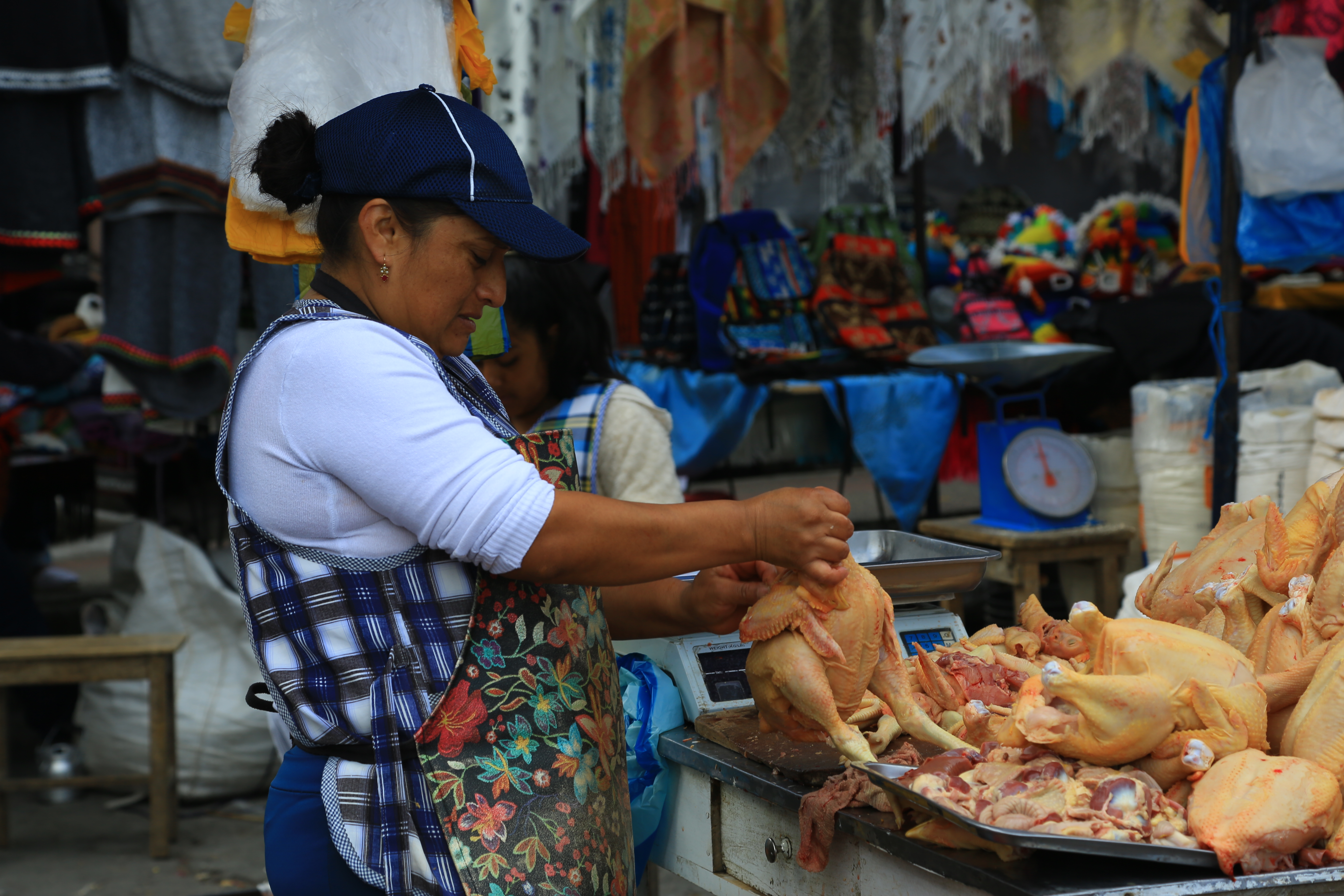 Neben den Ständen mit vielfacher Auswahl an Taschen, Ponchos, Schals und Teppichen konnte man Samstags auch eine grosse Auswahl an Essen und typischen Gerichten vorfinden. Es hatte irgendwie einen ganz eigenen und authentischen Flair die Frauen in dieser Kleidung die Erbsen schälen zu sehen, Brot zu formen und Hühner zu stopfen. Obwohl ich knapp bei Kasse bin, oder immer schon war, probierte ich etwas selbstgebackenes und konnte ein paar tolle Eindrücke bekommen wie die Einheimischen durch den Tag wanderten.
